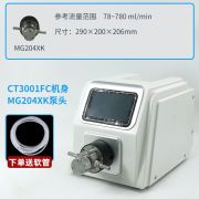 产品介绍 CT3001FC微型齿轮泵可提供78-2200(mL/min)的流量范围。采用4.3寸真彩触摸屏,可在流量或者分配模式下运行,同时还具有复制分配的功能,最多可以存储60条分配参数,方便用户调用。 工程塑料外观; 直流无刷电机驱动; 可实现在较高系统压力下传输液体 低噪音 无脉动; 可传输较高温度 较高粘度的液体; 可通过RS485与PC机进行通讯; 支持0-10kHz、0-5V、0-10V、4-20Ma等外部信号控制。 基本参数 转速范围:300~3000 rpm 可传输介质:≤50%气液混合液;≤10μm软质颗粒 显示方式:4.3寸工业级真彩触摸屏 液量范围:0~99999.99mL 流量分辨率:0.001mL/min 适用电源:宽泛AC90-265 50/60Hz 工作环境:环境温度0~40℃ 相对湿度<80% 驱动器重量:5.35kg(含泵头) 转速分辨率:0.01 rpm 可传输流体粘度:≤2000CPs 外控功能:启停(开关量信号);转速(0-5V 0-10V 4-20mA 0-10KHz可选) 液量分辨率:0.01mL 通讯功能:RS485通讯(MODBUS协议) 额定功率:<300W 外型尺寸(长×宽×高):290×200×206(mm) 防护等级:IP31 CT3001FC主要特点 ▲直流无刷电机驱动 高效率 运行平稳 免维护 ▲4.3寸真彩触摸屏操作简便 直观 一目了然 ▲可选择在流量或者分配模式下运行 并对相应参数设置 ▲在分配模式下可以调用复制分配已经保存的数据 复制分配最多可以达到60条记录 ▲可实现在较高系统压力下传输液体 低噪音 无脉动 ▲可传输较高温度 较高粘度的液体 ▲具有掉电记忆功能, 掉电后重新上电 保持掉电前的数据状态 ▲可通过RS485与PC机进行通讯 本公司可以提供通讯协议 ▲支持0-10kHz 0-5V 0-10V 4-20Ma等外部信号控制 ▲可与选配件进行配套使用实现小批量灌装 分配 配件有分装控制器 脚踏开关 接点控制模块等等 特殊要求可以咨询本公司 CT3001FC流量参数 G317XK泵头(齿轮材质PEEK):出口压强0.3MPa 参考流量范围380-3800(ml/min) 适用液体温度0~200℃ G312XK泵头(齿轮材质PEEK):出口压强0.3MPa 参考流量范围252-2520(ml/min) 适用液体温度0~200℃ G306XK泵头(齿轮材质PEEK):出口压强0.5MPa 参考流量范围126-1260(ml/min) 适用液体温度0~200℃ MG213XK泵头(齿轮材质PEEK):出口压强0.5MPa 参考流量范围220-2200(ml/min) 适用液体温度-35℃~100℃ MG209XK泵头(齿轮材质PEEK):出口压强0.5MPa 参考流量范围160-1600(ml/min) 适用液体温度-35℃~100℃ MG204XK泵头(齿轮材质PEEK):出口压强0.5MPa 参考流量范围78-780(ml/min) 适用液体温度-35℃~100℃。 CT3001FC可传输介质 适用于油类 水溶液 常温下中等浓度的酸 碱 盐溶液 醇类 酮基类 石油醚等介质传输。 |