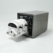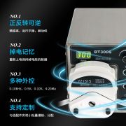 产品介绍 不锈钢外观; 可安装YZ1515、YZ2515两种泵头,能提供0.07一1330(mL/min)的流量范围。 三位数码管显示转速; 转速可手动调节,也可通过外控接口进行外部控制; 可与时间分装控制器配合,实现灌装功能; 具有掉电记忆功能; RS485通讯。 基本参数 转速范围:1~350rpm显示方式:3位数码管 调节方式:旋转编码器或外控调节 适用电源:宽泛电压AC90-265V,50Hz/60Hz 工作环境:温度0~40℃、相对湿度<80%不结露 驱动器重量:3.8kg(不含泵头) 转速分辨率:转速<100rpm,0.1rpm;转速>100,1rpm 外控控制:可选择0-10kHz、0-5V、0-10V、4-20mA;外控模块;控制启停,方向,转速 通讯功能:选配RS485通讯模块;可进行RS485通讯控制(标准Modbus规约) 消耗功率:<50W 外型尺寸(长×宽×高):237×148×170(mm) 防护等级:IP31 BT300S主要特点 ▲步进电机细分驱动,使用外置驱动,精度高,运行平稳,振动低 ▲不锈钢机壳、绿色数码显示,独具特色,应用领域更广泛 ▲3位LED数码管显示当前转速,简便、直观、一目了然 ▲旋转编码器及钮子开关调节转速、方向、启/停,操作简单便捷;还设有全速键,可实现快速填充或排空 ▲具有掉电记忆功能,掉电后重新上电,保持掉电前的数据状态 ▲可通过RS485与PC机进行通讯,本公司可以免费提供测试软件及通讯协议 ▲支持无线控制,可配合本公司遥控器实现远程无线操控 ▲支持0-10kHz、0-5V、0-10V、4-20mA等外部信号控制 ▲可与选配件进行配套使用实现小批量灌装、分配 配件有分装控制器、脚踏开关、接点控制模块等等,特殊要求可以咨询本公司 BT300S流量参数 YZ1515泵头:适用13# 14# 19# 16# 25# 17# 18#软管,单通道流量参考范围0.07-1330mL/min,支持1、2通道 YZ2515泵头:适用15# 24#软管,单通道流量参考范围1.7-980,支持1、2通道 BT300S典型应用 适用于常规流体输送、制药行业、精细化工、水处理、环保工程、食品饮料生产剂量添加剂、工艺发酵系统中补酸补碱消泡、科学实验等诸多通用领域。 |